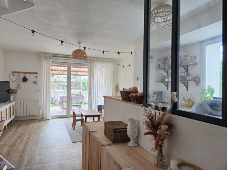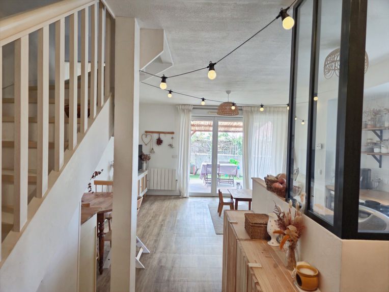 Elle bénéficie de deux places de parking avec une entrée privatisée, un extérieur de 89,50 m² (jardin et terrasse) deux cabanons extérieurs pour du rangement.